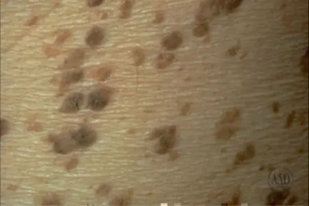 Seborrheic keratoses can look like stucco splattered on the skin.